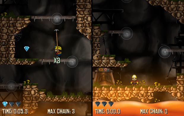 You take control of Carlos, an apathetic and chubby mexican miner. One day, while doing his daily mining business, he suddenly finds a rare diamond inside one of the mining shafts. As he tries to break it loose, lava emerges from the bottom of the shaft! Carlos quickly grabs the diamond, takes his trusty pickaxe and tries to escape the lengthy mineshafts!