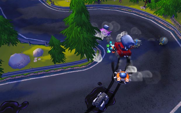 “TNT Racers is a fun multiplayer racing game full of variety, combining fast as lightning race action with brand new features. The Shadow Race feature lets every player stay in the race even if a driver is clearly in an inferior position. But the best things are the wicked pick-ups which will ultimately decide about victory or defeat. ”– nintendo.com